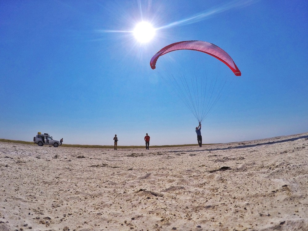We met two keen paragliders Dave and Jim on the pans – Checking the wind before they engage their para motors
