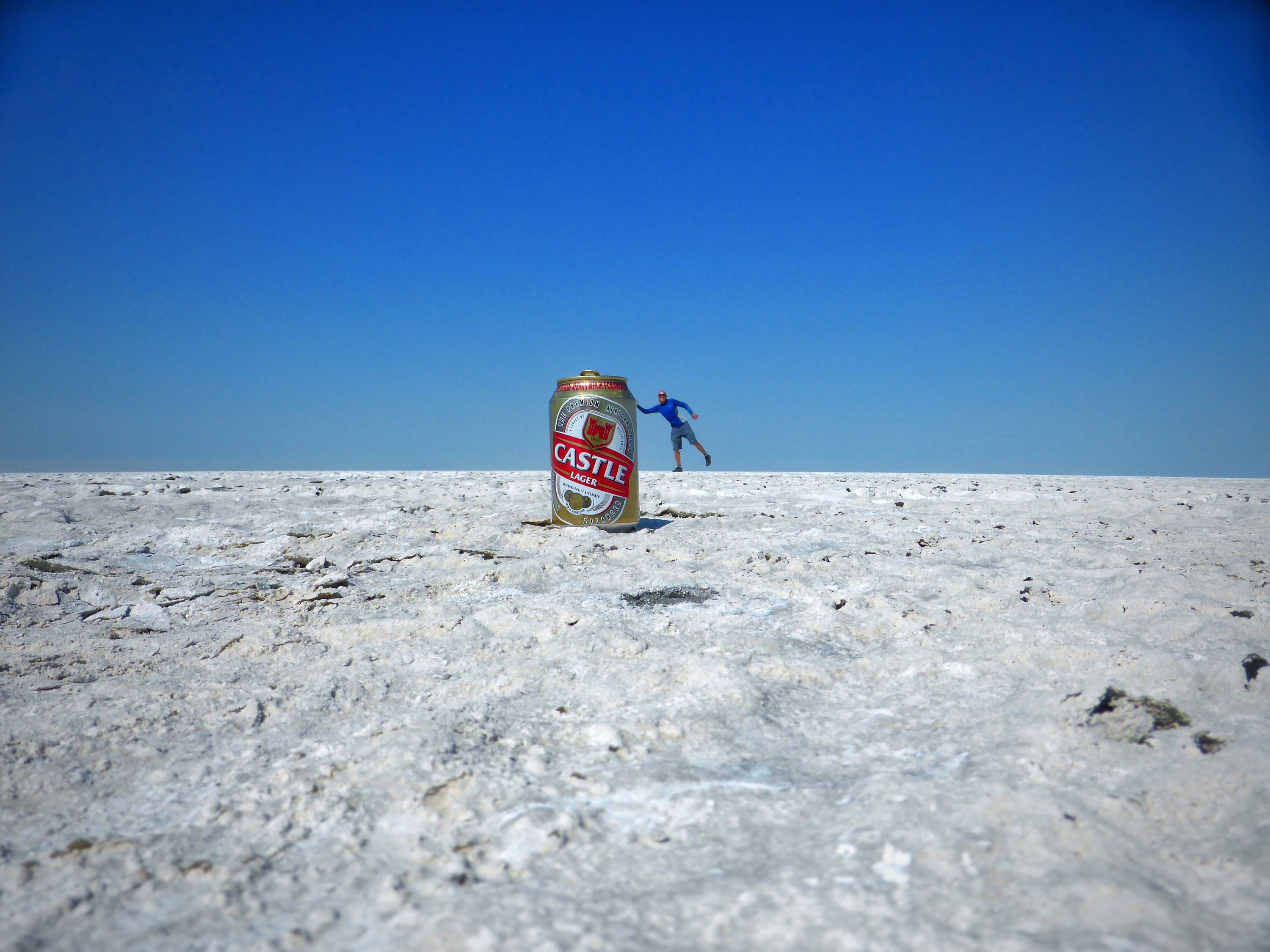 The next day I was again treated to a free night camping at Planet Baobab. I didn’t cycle more than ten kilometres the following day when I met James and John at a petrol garage whilst stocking up on some food. One of the most classic comments of the trip so far was when John the Englishman greeted me with: “Just looking at your bicycle makes me sweat”. I jumped at the invitation to join them for a day visit to the salt pans. I dropped my bicycle at James’ family run Gweta Lodge. The salt pans are believed to be the size of Portugal and one can see the curvature of the earth as you look into the distance. The total silence and nothingness is quite an experience. I was put up for two eventful nights in one of their chalets and was also taken to the Makgadikgadi Pans National Park where zebras, wildebeest and impala roam the plains in search of a morsel of grass. What an absolute pleasure to have met this very generous family.
