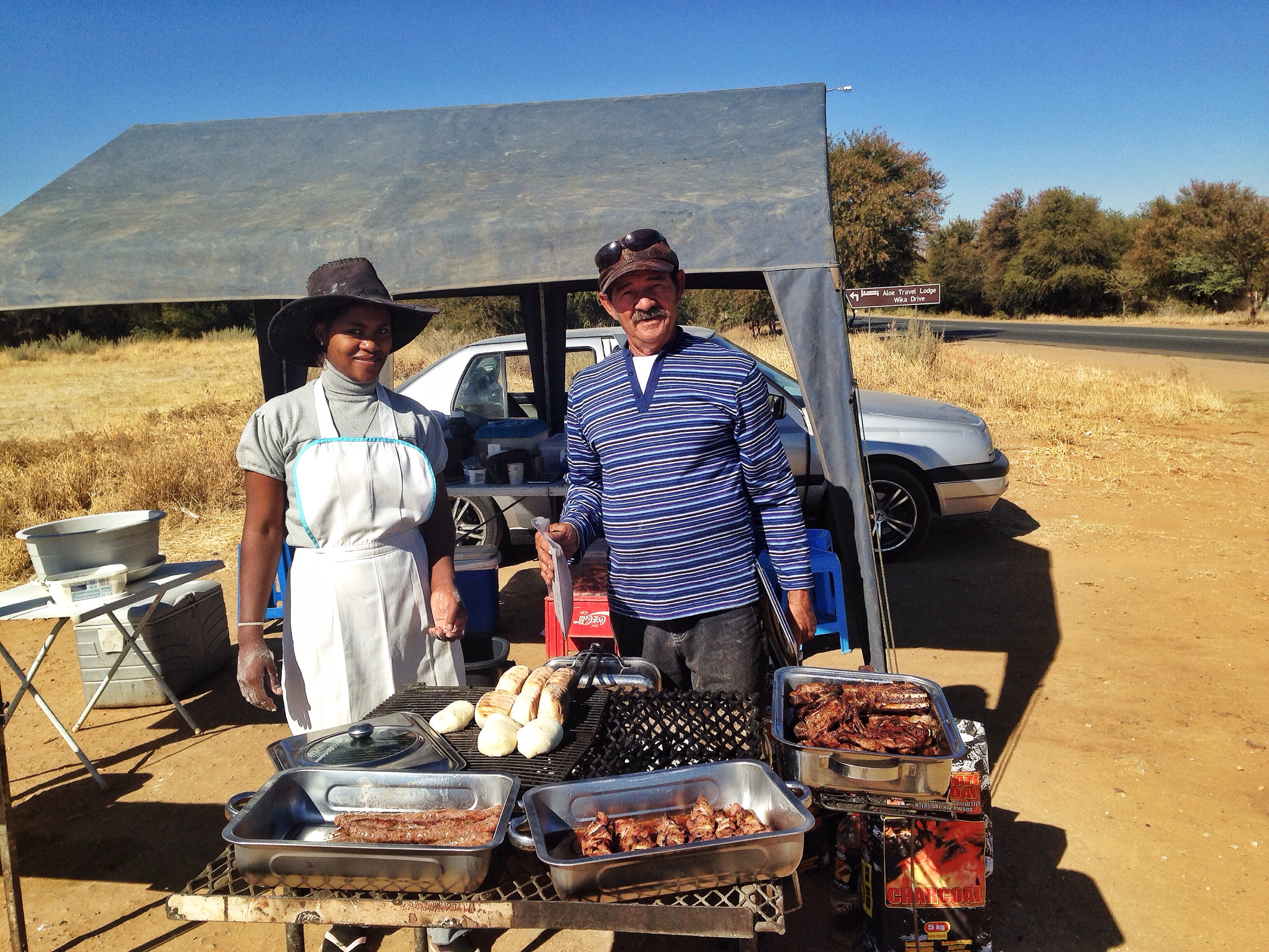 I took the Trans Kalahari Highway through to Windhoek. This is a long stretch of road with only the passing trucks and the warthogs that rush out of the grass along the road to keep the adrenaline pumping. After a couple of nights of freezing cold wild camps, I was welcomed and hosted to Windhoek by Ernst and Erno. They are family friends of my good friend Sonja. Ernst quickly recognised a hungry cyclist and took me to Joe’s Pub. He recommended the pork knuckle with coleslaw and a pint. This is an awesome spot where you feel like you’re in Germany itself. After dinner I joined Erno and his wife for a few glasses of wine and some entertaining conversation. The Holtz family own an outdoor shop and kindly donated a pair of long johns to the cause. I was also introduced to Jennifer, a staff member at their shop who then hosted me in Rehoboth the following night.