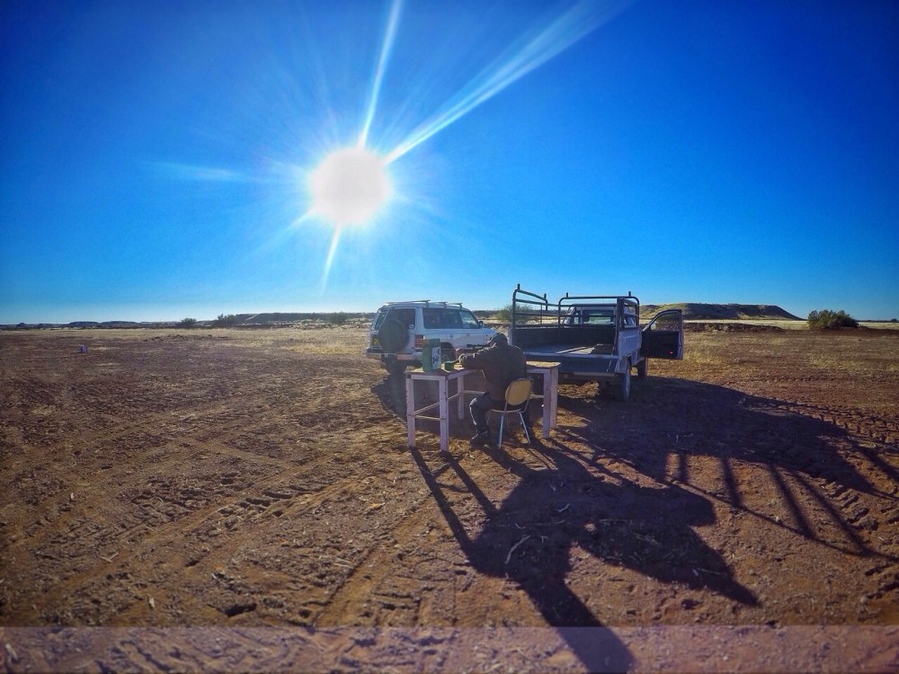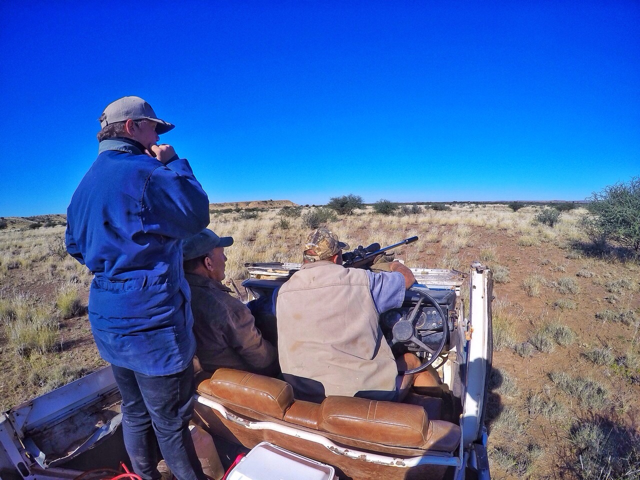 I rode for 170km to get to a campsite which was some 15km from Mariental. This was the first time that I had been refused a camp spot since leaving London as they were apparently too full to cater my small tent and bicycle. The lady was happy to send me on my way with the sun already set. I rode on for 1km and started to eat a sandwich to try re-energise when Johan a local diary farmer stopped to find out what was what. He invited me to stay at his house, but first took me to his friends house where we had an amazing man braai – gemsbok sausage, springbok steaks, garlic bread and beer. The next morning when he was about to send me on my way with a handful of home made springbok biltong, he asked if I wouldn’t want to come hunting with him and another friend. First a bit of target practice and then it was out on the 4×4 in search of the springbok. He was certainly going to be able to restock his biltong stash. Epic times!